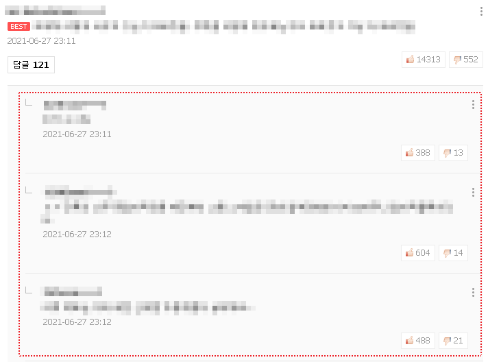 - 답글에도 좋아요/싫어요 가능 여부