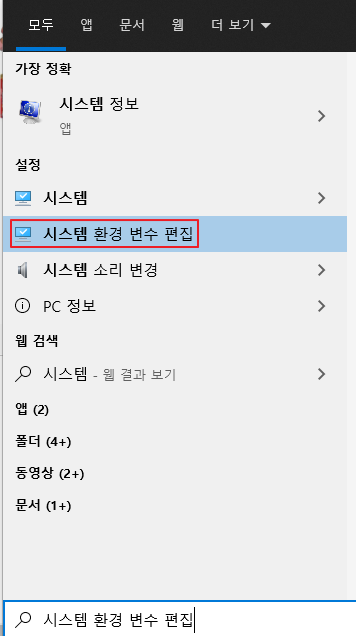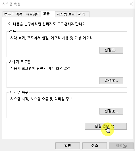 1차적으로 환경변수 설정을 확인 해보았다.