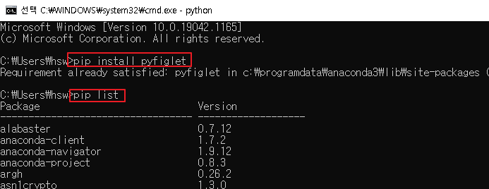 pyfiglet 이라는 패키지를 설치하였다.