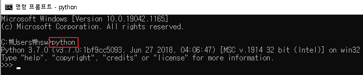cmd 창에서 python 을 실행해보면 알 수 있다.