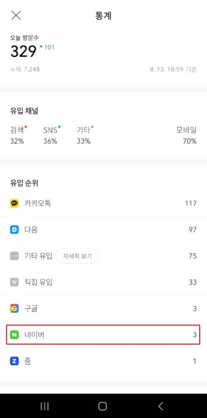 앞서 작성한 것처럼 네이버 검색 유입은 많지 않은 것 같지만