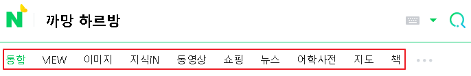현재 네이버는 [통합] - [VIEW] - [이미지] - [지식iN] 등으로 카테고리가 있는데