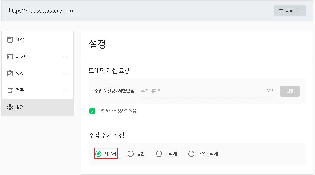 수집 주기 설정을 [빠르게]