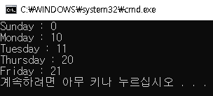 printf("Thursday : %d \n", Thursday);