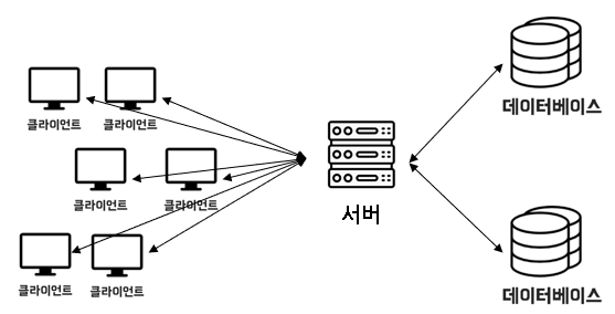 Client와 DBMS사이에 미들웨어 서버를 둔다.