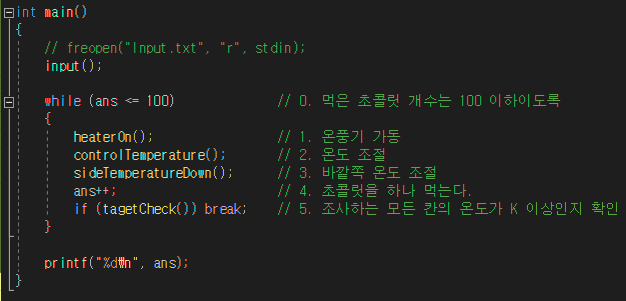 while (ans <= 100) // 0. 먹은 초콜릿 개수는 100 이하이도록