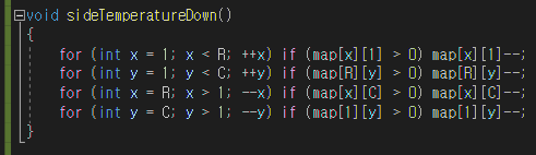map[][]에서 가장 바깥쪽 칸의 온도를 1씩 감소하는 작업이다.