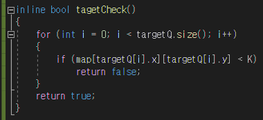 if (tagetCheck()) break; // 5. 조사하는 모든 칸의 온도가 K 이상인지 확인