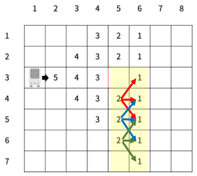 for (int y = C; y > 1; --y) if (map[1][y] > 0) map[1][y]--;