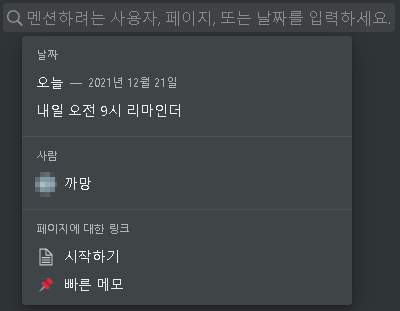 「@」로 사용자 / 페이지 / 날짜를 지정할 수 있다.