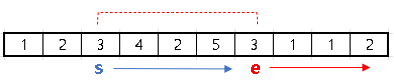 처음 원소 시작점에서 [s, e]를 구간을 잡아서