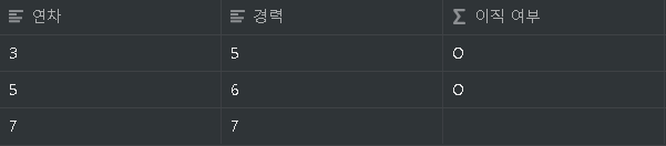 if(prop("연차") < prop("경력"), "O", " ")