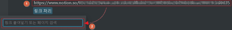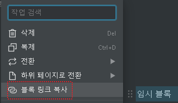 블록 링크 복사와 마찬가지로 URL 링크가 생성된다.