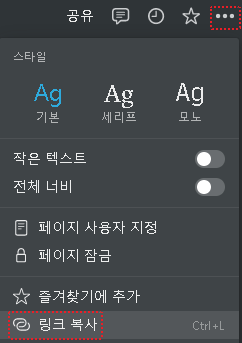 [링크 복사] 클릭 (cf. 페이지 복제와 다르다.)