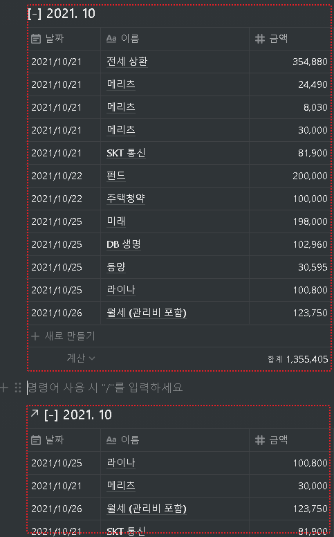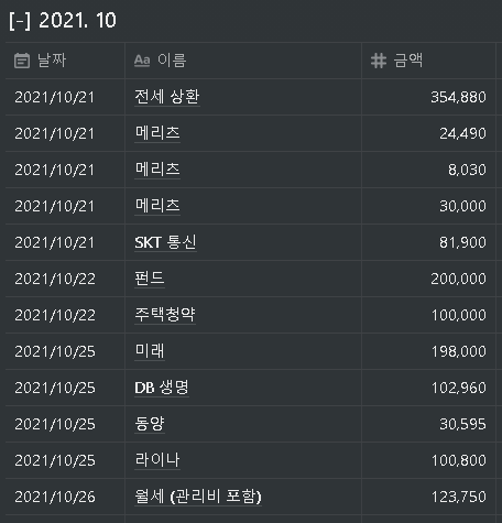 아래와 같이 가계부 (일부) 목록이 있다고 가정해보자.