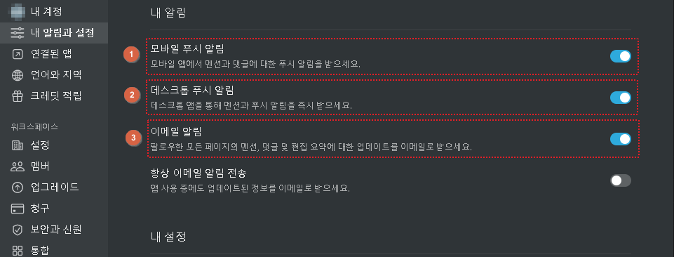 이와 함께 노션 협업 효율성을 높이는 기능 중 하나가 알림이다.