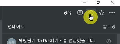 노션에서는 우측 [시계 모양] 아이콘을 클릭하면 업데이트 내역을 확인할 수 있다.
