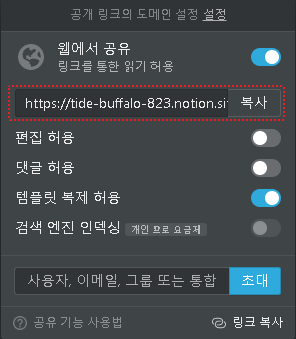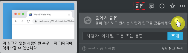 노션에서는 사용자를 지정해서 공유하는 것 외에도