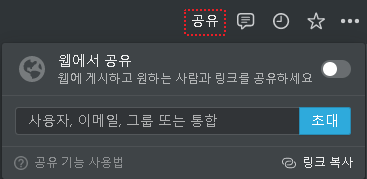 우측 상단 [공유]에서 [웹에서 공유] 활성화