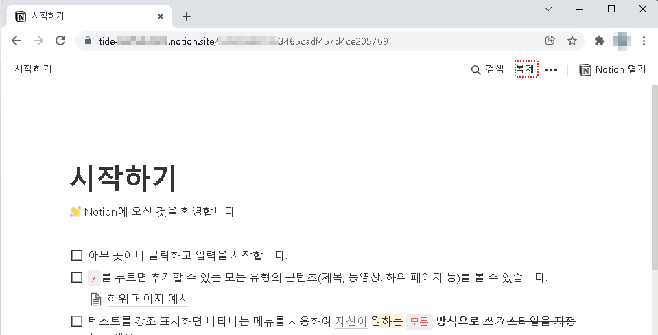 이렇게 URL 링크 공유 받은 것은 Notion 계정 여부와 관계없이