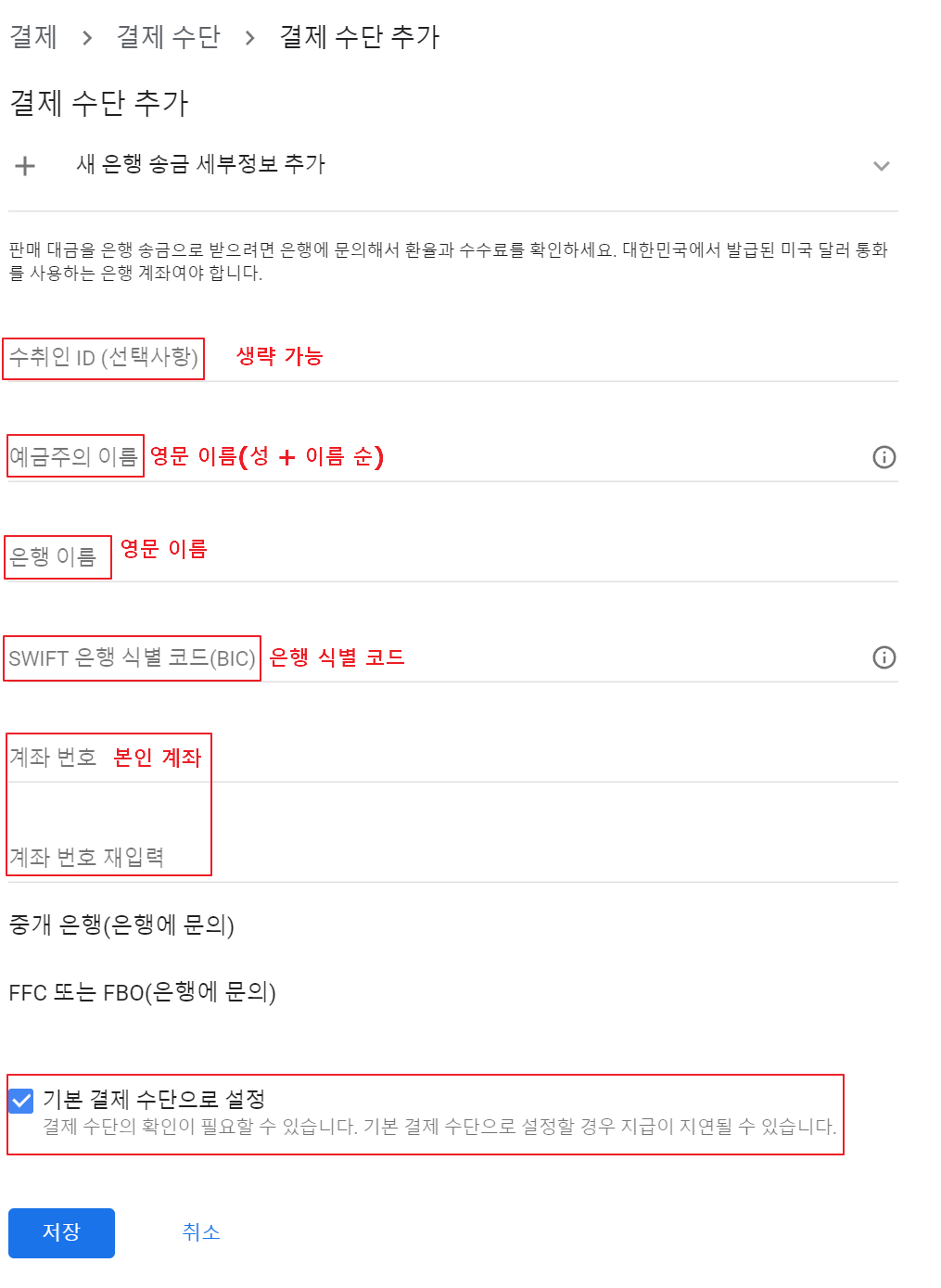 [지급 받을 방법]에서 [결제 수단 추가] 클릭