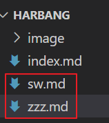 아래와 같이 같은 경로에 [sw.md]와 [zzz.md]가 존재한다.