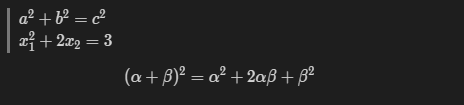 $$(\alpha + \beta)^2 = \alpha^2 + 2\alpha\beta+\beta^2 $$
