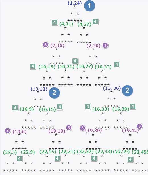 arr[v.x+1][v.y-1] = '*'; arr[v.x+1][v.y+1] = '*';