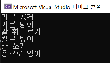 void defence() override { std::cout << "칼로 방어" << std::endl; }
