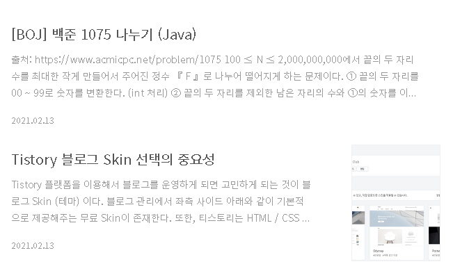 | Tistory 블로그 Skin 선택의 중요성 (0) | 2021.02.13 |