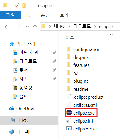 압축 파일 해제 후 eclipse.exe 실행