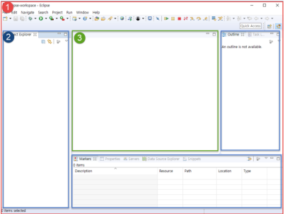 ▶ 퍼스팩티브는 여러개의 뷰(View)와 에디터 영역, 메뉴 등으로 구성되어 있습니다.