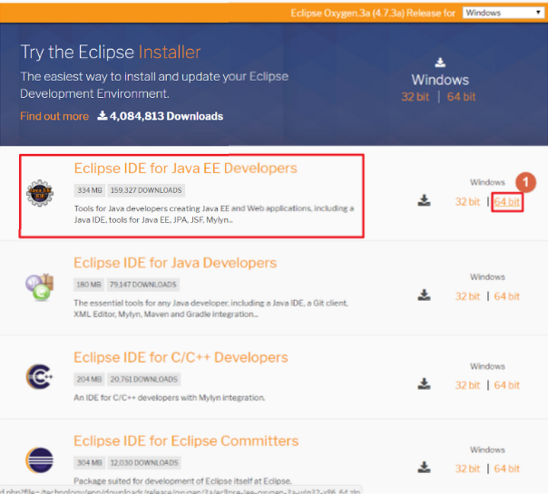 링크 : http://www.eclipse.org/downloads/eclipse-packages/ 접속