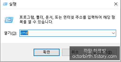 명령 프롬프트 실행: "Ctrl + R"을 눌러서 "cmd" 입력 후 확인