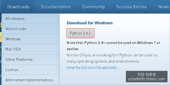 파이썬 설치는 공식 사이트에서 다운 받아 간단하게 진행할 수 있다.