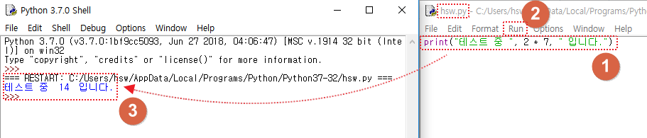 (1) 소스파일(source file)에 입력하고 (2) Run 해주면 (Window에서 단축키는 "F5")