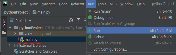 기본적으로 main.py가 작성되어 있는데, 아래와 같이 실행해 볼 수 있다.