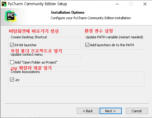 * PATH 항목과 .py 항목은 체크할 것