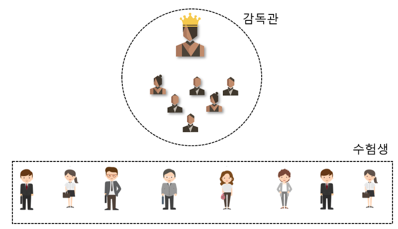[1] 수험생 4명 - 총감독관 1명이 2명 mark / 부감독관 1명이 2명 mark