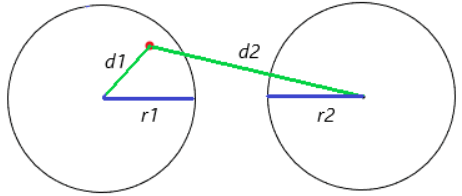 ▶ d2 > r2 이므로, 원2에 포함되어 있지 않다.