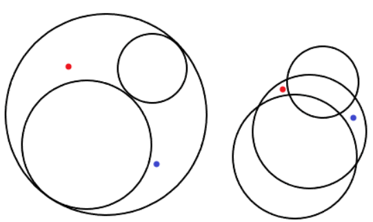 : 원의 교차 없이 두 점을 이을 수 있습니다.