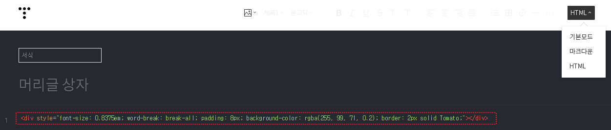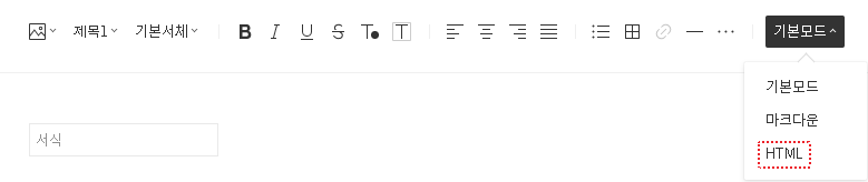 새 글 작성할 때 "HTML" 편집 모드로 전환