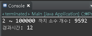 [2~100000까지 소수 개수 및 경과시간 확인]