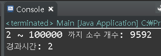 [2~100000까지 소수 개수 및 경과시간 확인]
