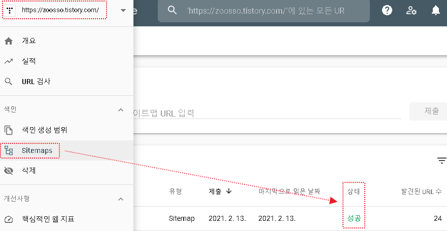 사이트맵(Sitemaps) 확인
