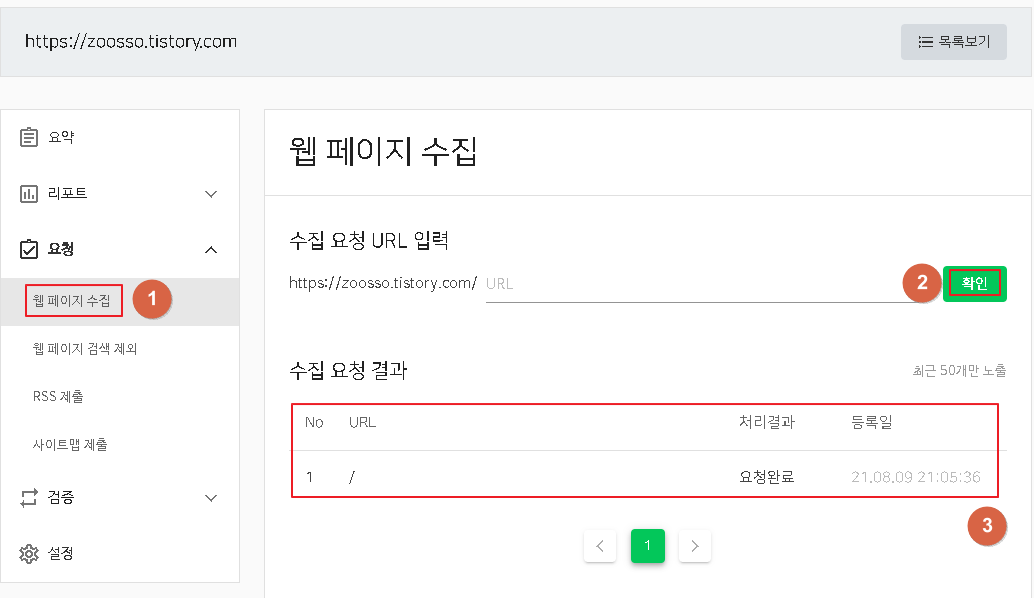 해당 블로그가 검색 최적화를 위한 정보가 갖춰지고 제대로 수집되는지 확인해준다.