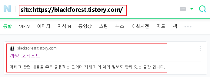 네이버 검색창에서 site:{검색하고자 하는 URL} 입력
