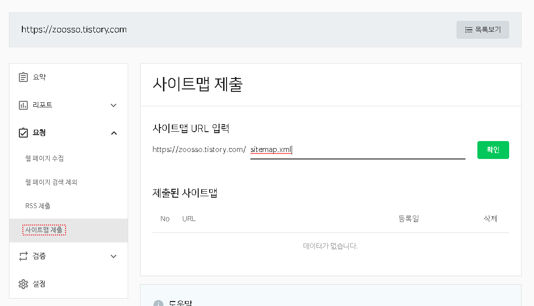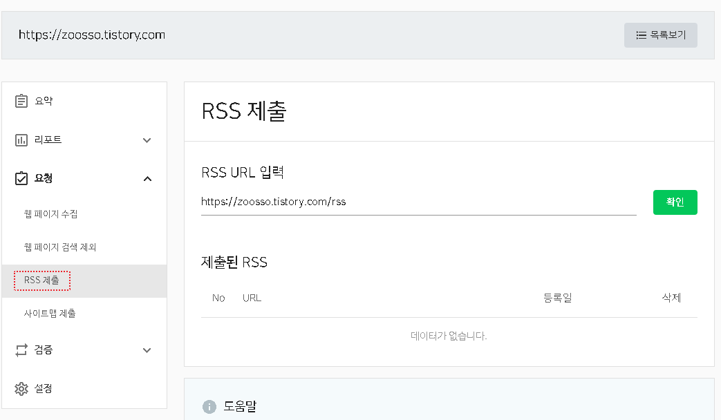 - 등록된 것을 확인한 후 추가적으로 RSS와 sitemap을 처리해주어야 한다.