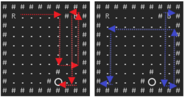 // 진행과정에 있어서 파란구슬이 존재했다면 사실상 쭈욱 미끄러진 곳에서는 파란구슬이 위치할 수밖에 없다.