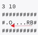 // 그렇기에 빨간구슬은 끝위치에서 바로 직전 위치에 있어야 한다.